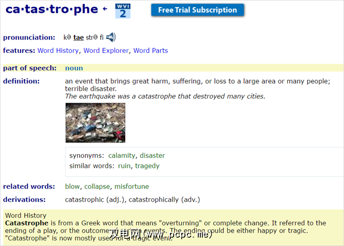 该网站在主页上提供了每周词汇,非常方便。此外,您可以按字母浏览单词,并且会发现词典不仅包含语。因此,如果您对报价单,其他搜索选项和参考书目感兴趣,则可以签出订阅选项[Broken Link Removed]。但是字典中的基本搜索是免费的。