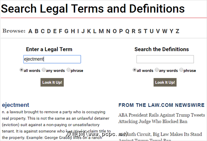 如果不确定如何拼写一个单词,可以按字母浏览。然后,只需从该字母开头的选项列表中选择您的单词即可。从减排到分区,这都是极好的法律资源。