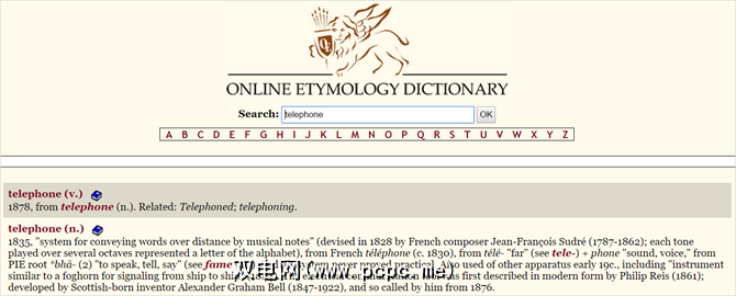 如果您对单词的研究感兴趣,那么可以看看在线词源词典。这个漂亮的工具提供了许多年以来单词的含义和发音的详细信息。例如,您是否知道单词电话可以追溯到1835年?