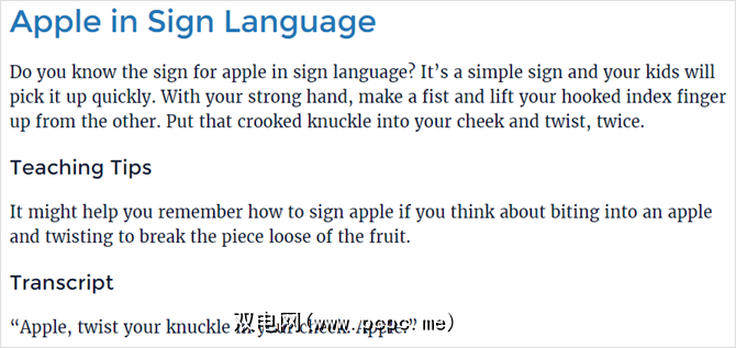 您单击的每个单词都将显示视频演示,并带有成绩单和如何执行标志的书面说明。该词典和网站旨在教和帮助需要与手语对话的年轻人,但它对任何年龄的人都将有所帮助。