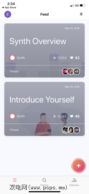 您可以创建或找到分解成较小“合成器"的常规播客。单击它们以转到完整的播客。 Synth提要使您可以浏览他人共享的简短播客,并对它们进行评论。
