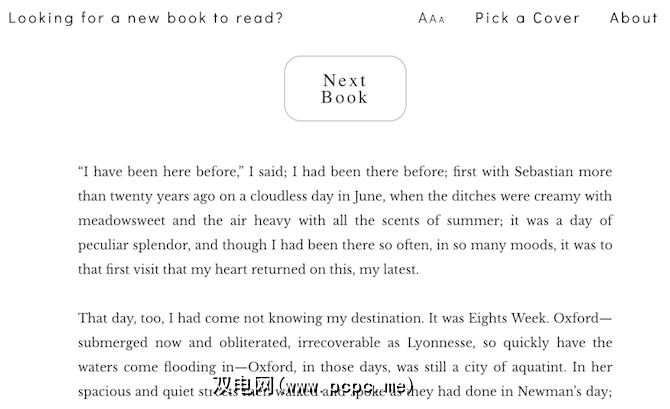 该站点为您提供了一本书的简短摘录,而没有透露有关作者,本书或其他可能引起偏见的信息。阅读它,如果您喜欢它,则单击“显示标题和作者"按钮以查找其内容。如果您不喜欢它,那么“下一本书"按钮将为您提供新的摘录。