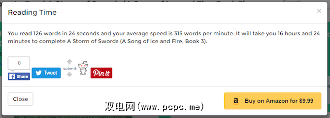 搜索任何书名,该网站将告诉您普通读者完成该书所花费的时间。但是更好的是,该网站进行了阅读速度测试,以检查您的速度。其中包括摘自本书的一小部分摘录,因此您可以更准确地了解完成本书所需的时间。