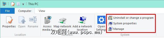 打开(文件)资源管理器时通过按 Windows键+ E ,您将在计算机 / 此PC 下找到指向“控制面板"的链接。在Windows 7中,有一个打开控制面板按钮。在Windows 8和10中,您会在计算机标签中找到控制面板功能的各种快捷方式。如果Windows 10具有打开设置图标,则Windows 8将显示打开控制面板按钮。