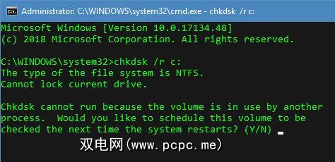 Chkdsk可能会要求您在下次系统重新启动时运行。如果是这样,请输入是是 Y ,然后重新启动以启动它。