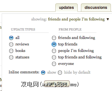 第一步:打开您的朋友门户。 第二步:单击“编辑好友"。 第三步:选择要包括在“最佳朋友"过滤器中的任何用户。取消选择要排除的任何用户。 [注意:要完全删除用户,请单击X图标。小部件中默认情况下会显示一个对话,显示我正在关注的朋友和人。单击向下的三角形。 第六步:这将提示不同新闻提要过滤器的对话。选择您感兴趣的过滤器,例如好友,然后单击应用过滤器。 Goodreads与其他所有社交网络一样,都有状态更新。与Facebook,G +和LinkedIn相似,这些是您写给朋友的短信。但是与这些竞争者不同,Goodreads具有独特的图书进度状态更新!