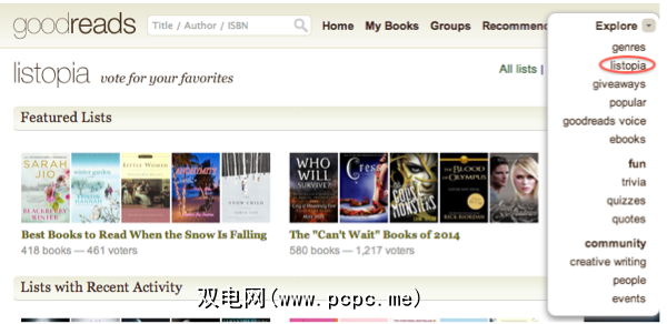 列表是用户提出可扩展书问题的地方,例如夏季阅读的最佳书籍,2014年的最佳书籍,最佳哭泣的图书等,其他用户用自己的答案回答。这用于许多创意目的,包括比赛,推荐和研究。要访问Listopia,请打开标题中的“浏览"选项卡,然后单击Listopia。