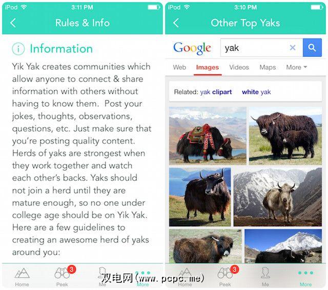 在使用Yik Yak的最近几个月中,我发现有趣的是,本地“牧群"以多快的速度创建了自己的Ya牛的社区规则,以及这些规则将在多大程度上得到遵守和执行。 Yik Yak的投票系统基于简单的“ upvote / downvote"结构,但是如果任何Yak获得-5票,它将自动“投票出去"并从视野中删除。我对不符合社区标准的Yaks被移除的速度感到惊讶,这不是通过任何外部审核,而是通过用户群。