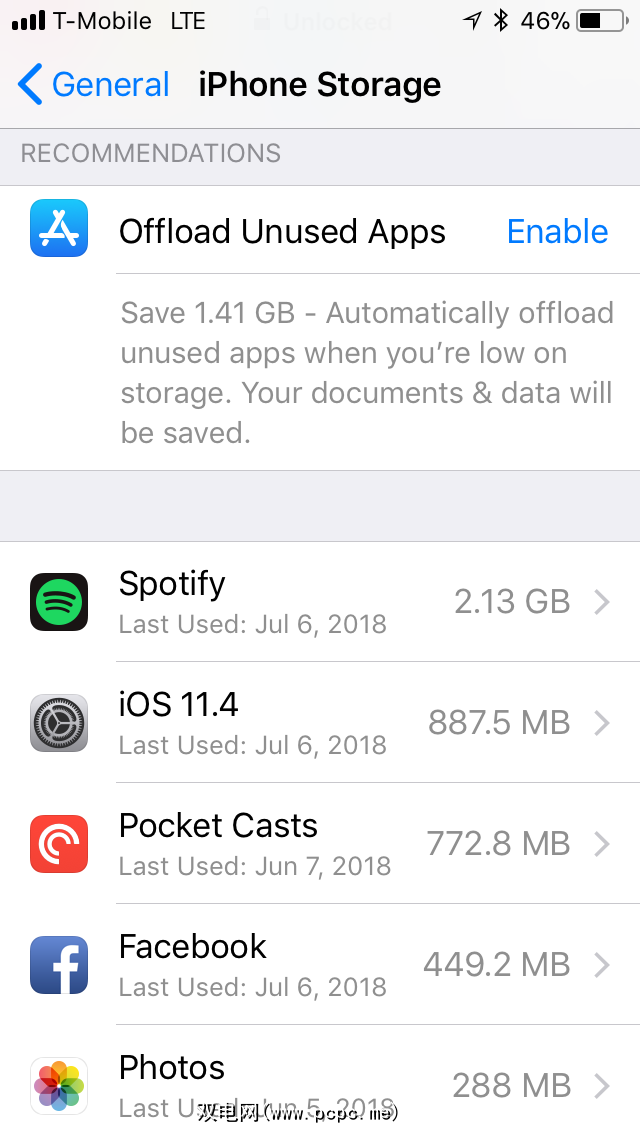 您的应用将列出按照存储使用的顺序,先列出最高的。但是,在每个应用程序名称的正下方,您会看到它们最后一次使用的日期。 (这也意味着上次打开该应用程序。如果您错误地打开了一个应用程序并且不与它进行交互,Apple仍会考虑“使用"该应用程序。)