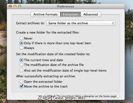 您可以将Unarchiver设置为提取后删除存档文件,由于我很聪明,我立即这样做。如果需要,可以设置未存档文件的最终位置。您甚至可以设置Finder在取消存档后打开新文件夹。