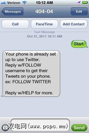 在Twitter上,只需将“开始"一词发送到40404(如果您在美国–您可以找到其他国家的短代码)。您将收到一条回信,询问您的用户名和密码。