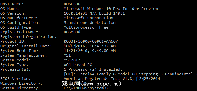 systeminfoBIOS版本''出现在列表中相应参数的旁边。