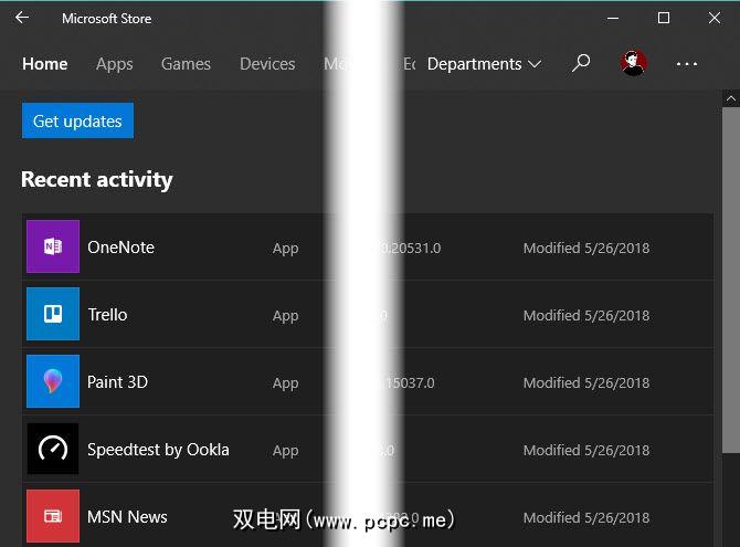 它还具有一种更新应用程序的单一方法的优点:要更新您拥有的所有Store应用程序安装程序(或任何默认的Windows 10应用程序),请首先打开 Microsoft Store 应用程序。点击右上角的三点式菜单按钮,然后选择下载和更新。您会在此处看到具有可用更新的所有应用;单击获取更新进行再次检查。