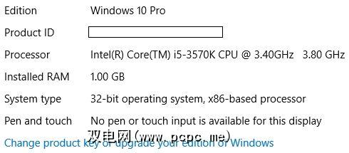 在开始升级之前,您需要确认系统体系结构是否支持64位。转到设置>系统>更新和安全>激活。该屏幕包含您的系统类型。如果您看到“ 32位操作系统,基于x64的处理器",则可以完成升级。如果根据下图显示“ 32位操作系统,基于x86的处理器",则说明您具有32位CPU,这意味着您将无法升级。