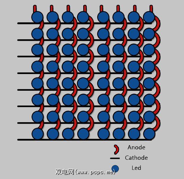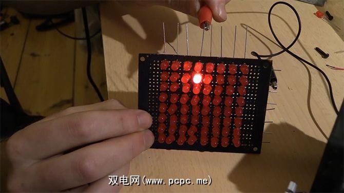 虽然不是严格必要的,因为您可以将组件直接焊接到Nano上,在测试过程中,我还发现一块小面包板非常有用。 该项目需要大量的焊接,作为一个初学者,它似乎令人生畏。我个人还是焊接的初学者,发现它并不像看起来那样具有挑战性或耗时。如果您还不熟悉焊接,这里有一些很好的技巧可以帮助您。 如果您真的不热衷于焊接,可以使用LED灯条或现成的项目来完成此项目。入门套件中可能包含的LED矩阵。如果您决定走那条路线,则必须进行一些代码调整。 设置Arduino我们将从Arduino的电路图以及将要连接的电线开始 在矩阵内部现在制作我们的8 x 8 LED矩阵。首先创建矩阵的一行和一列是一个好主意,以确保它恰好在原型板上您想要的位置。 在上面的照片中,所有LED放置的位置应使阳极(较长的正极脚)朝向原型板的顶部。这很重要,因为我们将通过将共同的阳极连接在一起来创建共同的阳极列,以及共同的阴极行(较短的负极)。现在马上解决这个问题将在以后省去头痛! 我们将建立一个公共的行阴极矩阵,该图显示了它们如何连接。 可能看起来有些令人生畏首先,但这是一个非常简单的配置。在每一行中,所有阴极从右到左连接,然后连接到我们的Arduino引脚之一。之后,我们对阳极的每一列都执行相同的操作。这样,根据我们加电的那一列以及接地的那一行,我们可以打开阵列中的任何单个LED。 让焊接开始开始通过放置第一排LED。确保所有阳极都朝向顶部,并将其翻转过来。我发现在每个角落添加另一个LED,并使用弹性线将另一块Protoboard固定在顶部,有助于将所有东西固定到位。 现在,每个LED的阴极(短)脚一一弯曲。左侧,以便它们彼此重叠。从左侧开始向右操作最简单。如果您使用一块较大的原型板,则可以先将它们焊接到板上,然后使用焊盘将它们连接在一起。小心不要将任何阴极连接到板上的任何其他线或阳极上! 对所有八行重复此过程,完成后,您应该拥有看上去类似的东西像这样: 跳跃阳极!阳极的列稍微有些怪异。在上图中,阳极每次穿过一排阴极时就会弯曲。这是因为它们根本无法触摸行。我们必须将阳极弯曲到阴极行上方,并将它们彼此连接。您可能会发现用笔弯曲腿有很大帮助。 对每一排阳极执行此操作,并在每个顶部阳极上连接一个电阻。您可能会发现将电阻器放置在原型板的下一个孔中并使用焊料将其连接起来更为容易。您现在应该有类似这样的内容: 恭喜! LED矩阵已完成。在此阶段,请彻底检查焊接,以确保没有间断,并且所有列均未接触到行。如果它看起来不漂亮,请不要担心,我们只需要它起作用即可!您现在可以通过将5v连接到任一列末端并接地到任何行末端来分别检查每个LED。 提供的一切都很好,将连接线连接到每一列和每一行,并将它们连接到您的Arduino,如上图所示。 让我们开始编码打开Arduino IDE,然后选择您的电路板和端口。如果您不熟悉Arduino,请查看此入门指南。 将此代码输入编辑器。如果您不熟悉它,则代码会很密集,但是可以在此处使用完整的注释,以帮助您了解其工作原理。 const int row[8] = { 2,3,4,5,6,7,8,9 };const int col[8] ={ 10,11,12,14,15,16,17,18 };int pirPin = 19; int pirState = LOW; int val = 0; bool pirTrigger = false;const int pirLockTime = 12000; int pirCountdown = pirLockTime;int pixels[8][8];const int refreshSpeed = 500;int countDown = refreshSpeed;int currentCharIndex = 0;typedef bool CHAR_MAP_NAME[8][8];const CHAR_MAP_NAME blank = { {0 , 0 , 0 , 0 , 0 , 0 , 0 , 0},{0 , 0 , 0 , 0 , 0 , 0 , 0 , 0},{0 , 0 , 0 , 0 , 0 , 0 , 0 , 0},{0 , 0 , 0 , 0 , 0 , 0 , 0 , 0},{0 , 0 , 0 , 0 , 0 , 0 , 0 , 0},{0 , 0 , 0 , 0 , 0 , 0 , 0 , 0},{0 , 0 , 0 , 0 , 0 , 0 , 0 , 0},{0 , 0 , 0 , 0 , 0 , 0 , 0 , 0},}; const CHAR_MAP_NAME threedownthreein = { {0 , 0 , 0 , 0 , 0 , 0 , 0 , 0},{0 , 0 , 0 , 0 , 0 , 0 , 0 , 0},{0 , 0 , 1 , 0 , 0 , 0 , 0 , 0},{0 , 0 , 0 , 0 , 0 , 0 , 0 , 0},{0 , 0 , 0 , 0 , 0 , 0 , 0 , 0},{0 , 0 , 0 , 0 , 0 , 0 , 0 , 0},{0 , 0 , 0 , 0 , 0 , 0 , 0 , 0},{0 , 0 , 0 , 0 , 0 , 0 , 0 , 0},}; const int noOfFrames = 5;const CHAR_MAP_NAME *charMap[noOfFrames] ={&blank,&threedownthreein,&blank,&blank,&threedownthreein};void setup(){ for (int i=0;i<8;i++){ pinMode(row[i], OUTPUT); pinMode(col[i],OUTPUT); //motion sensor pinMode(pirPin, INPUT); digitalWrite(col[i], LOW); }}void screenSetup(){ const CHAR_MAP_NAME *thisMap = charMap[currentCharIndex]; for (int x = 0; x < 8; x++) { for (int y = 0; y < 8; y++) { bool on = (*thisMap)[x][y]; if(on) { pixels[x][y] = HIGH; } else { pixels[x][y] = LOW; } } } currentCharIndex++; if(currentCharIndex>=noOfFrames){ currentCharIndex = 0; } }void refreshScreen(){ for (int currentRow = 0; currentRow < 8; currentRow++){ digitalWrite(row[currentRow], LOW); for (int currentCol = 0; currentCol < 8; currentCol++){ int thisPixel = pixels[currentRow][currentCol]; digitalWrite(col[currentCol], thisPixel); if (thisPixel == HIGH) { digitalWrite(col[currentCol], LOW); } } digitalWrite(row[currentRow], HIGH); } }void loop(){ val = digitalRead(pirPin); if (val == HIGH){ pirTrigger = true; } else if (val == LOW && pirCountdown <=0) { pirTrigger=false; pirCountdown = pirLockTime; } if(pirTrigger==true && pirCountdown > 0) { refreshScreen(); countDown--; pirCountdown--; if(countDown <= 0) { countDown = refreshSpeed; screenSetup(); } } }要理解的重要部分是: > refreshSpeed 变量。此变量确定每个屏幕之间的时间刷新方式。数字越大意味着等待时间越长。 常量 CHAR_MAP_NAME s。在此处放置要显示的每个字符映射表(或框架,如果更容易想到它们的话)。 noOfFrames 变量。这决定了一个完整播放中显示多