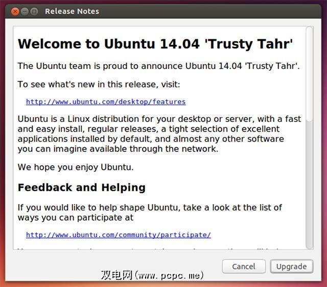 了解如何升级Ubuntu安装非常重要,因为这很容易这样做,您就可以从所有改进中受益。即使您不喜欢经常升级,升级到14.04 LTS也是一个好主意,这样您就可以在不愿意的情况下再升级5年。