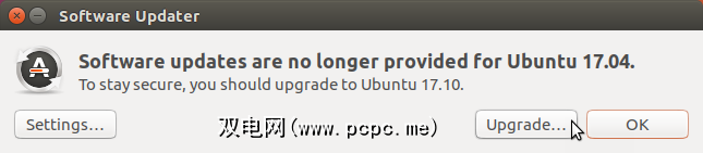 如果您使用的是Ubuntu 17.04,则软件更新程序将告知您不再提供更新。单击升级立即升级到17.10。然后,跳到下面的“升级到Ubuntu 17.10"部分。)