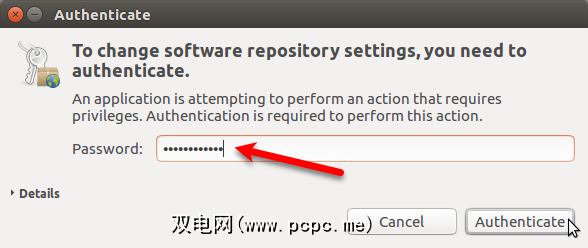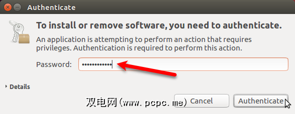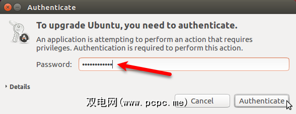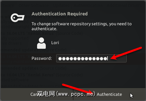 将要求您对此操作进行身份验证。输入您的密码,然后单击验证。