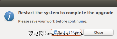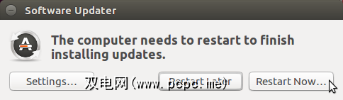 软件更新程序显示更新的进度。完成后,系统会要求您重新启动。如果您还没有准备好重新启动,请点击稍后重新启动。否则,请单击立即重新启动以完成更新的安装。