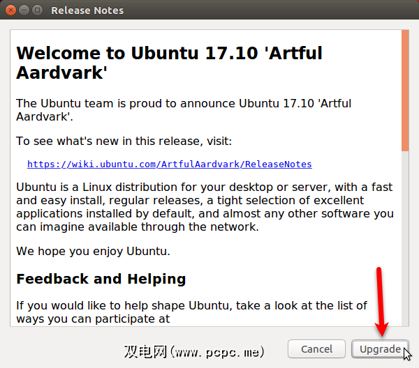 要开始升级过程,请单击发行说明对话框底部的升级。<