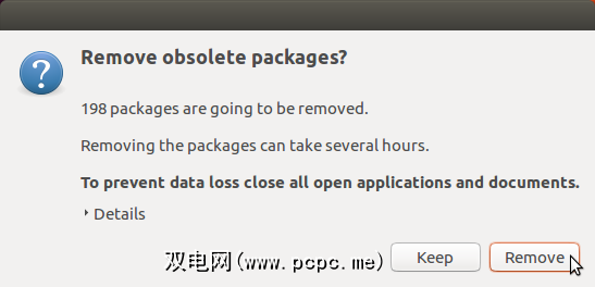 安装升级后,清理过程开始。更新程序会搜索过时的软件包,并询问您是否要删除找到的过时的软件包。