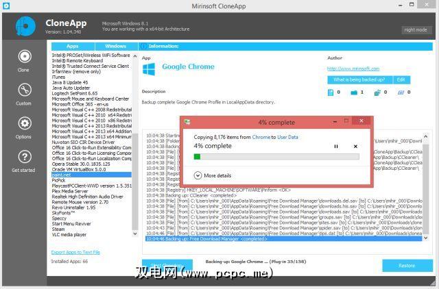 CloneApp仅适用于桌面程序,不适用于Modern Apps或新命名的Universal应用和游戏。还有Windows 8 Apps数据备份[不再可用]形式的另一种免费和便携式实用程序。