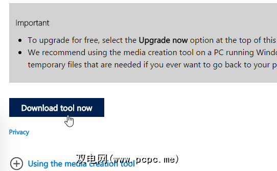 其次,下载媒体创建工具。您需要向下滚动页面才能找到它。