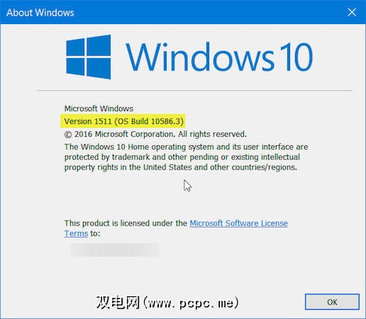 如果您看到“ 1511版",则说明您已成功升级。