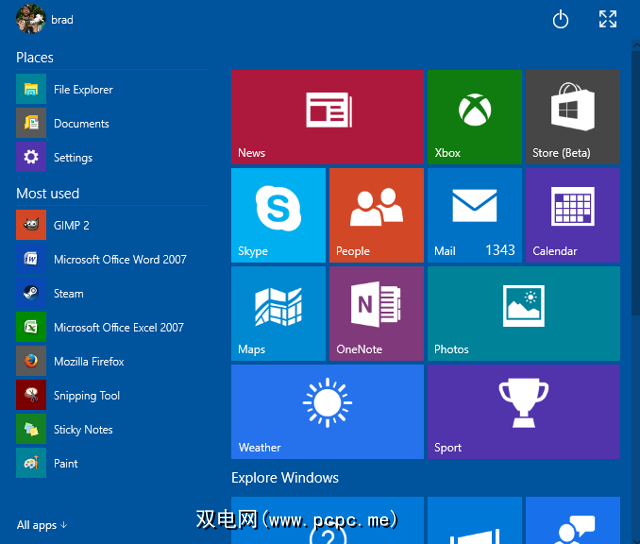 但是,这不是唯一的更改。 ``开始''屏幕已被纳入``开始''菜单,保留了相同的基于图块的界面,但在桌面环境中更易于访问。默认情况下,任务栏上还有一个搜索栏,它可以搜索您的计算机或使用Bing搜索Internet。