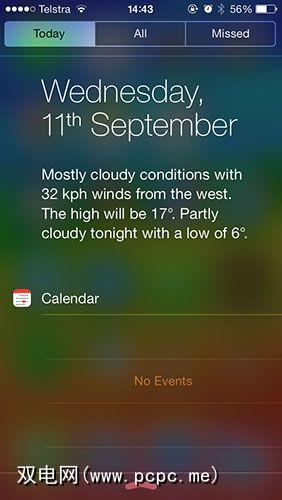 您只需轻按提醒旁边的圆圈,即可将提醒标记为已完成,然后轻按即可直接跳转到即将到来的日历约会。如果未在Notification Center设置中使用“今日"屏幕,则可以对其进行编辑以省去很多此类信息。