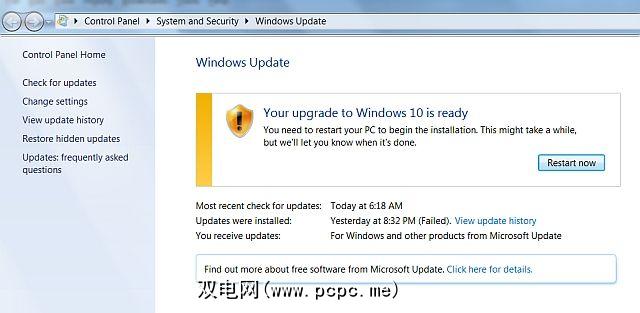 虽然后者具有重新计划按钮,但前者却没有。重新启动计算机后,您将前往城镇升级,Mayfield确认“如果您看到的是上述两个屏幕中的任何一个(与此处显示的完全一样,则GWX控制面板尚无法帮助您。"