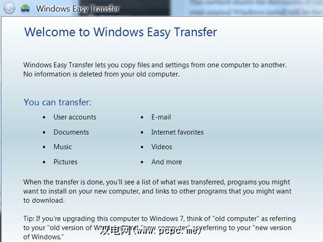 Microsoft拥有自己的软件Windows Easy Transfer,专门用于传输设置。可从Microsoft网站上免费下载该版本的Vista和Windows XP版本。 Windows 7和Windows 8默认附带该实用程序。这是该工具将要传输的内容。