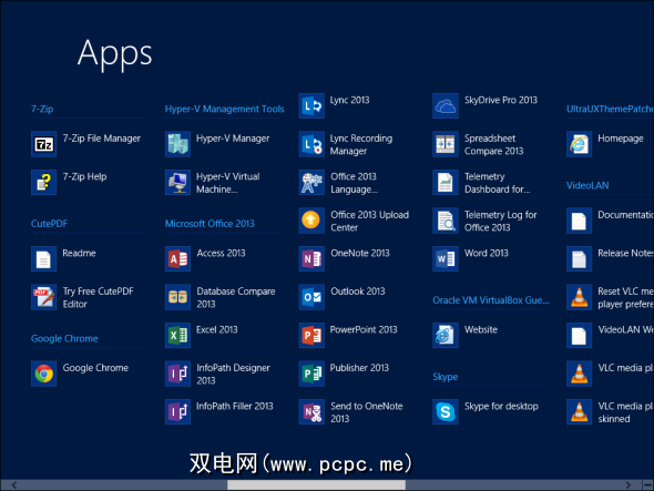 开始屏幕本质上是“开始"菜单的后继者-将其视为全屏开始菜单。您安装的应用程序将在“开始"屏幕上获得快捷方式,因此您可以根据需要安排这些快捷方式。您还可以使用搜索功能快速启动应用程序。