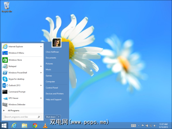 现在您在台式机上,应该看起来非常熟悉。它是Windows 7台式机,但具有各种改进,例如更好的任务管理器。但是,您会注意到不再有“开始"按钮。