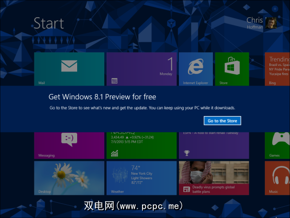 Windows 8用户可以轻松实现。 Windows商店将提供Windows 8.1(是的,这是现代Windows 8环境中的商店应用程序)的免费升级。它会下载并安装,而无需您进行任何付款或准备安装介质。