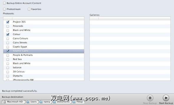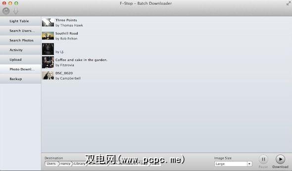 有两种方法可以将照片从F-Stop下载到您的台式电脑。首先,当涉及到自己的照片时,您可以备份整个Flickr库,或者只是选择要下载的特定照片集,甚至是Flickr收藏夹。如果您对创建照片集不感兴趣,则只需下载整个照片流即可。您还可以通过单击屏幕底部的文件路径来选择照片的保存位置。备份照片集的真正妙处在于将它们备份到相应的文件夹中。