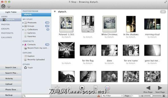 与F-Stop上的任何Flickr照片进行交互时,无论是谁上传的,都有各种各样的与图像交互的方式。查看照片网格时,可以放大或缩小缩略图的大小。双击任何给定的照片将在新窗口中将其打开。