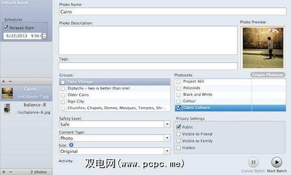 任何Flickr客户端的关键功能是上传照片的功能。 F-Stop允许用户批量上传照片,选择照片名称,标签,组,照片集,可见性等。最重要的是,添加照片后,您可以添加单独的标签,将它们分配给不同的标签集,等等,然后再确定无缝的上传体验。您甚至可以根据需要创建一个新的照片集来添加照片。