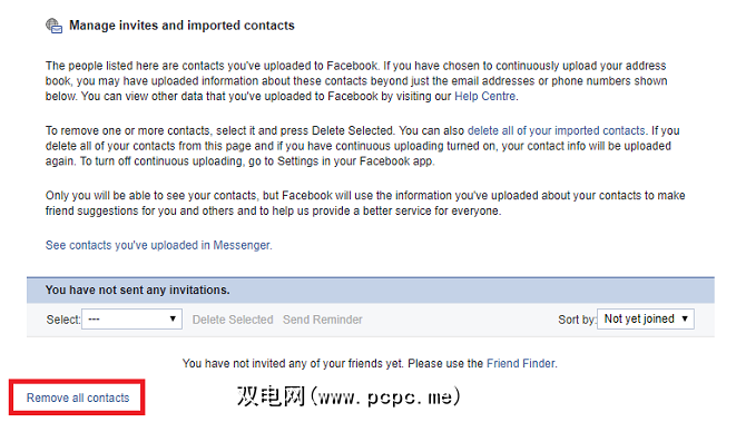 要删除现有的已上传联系人,您需要使用网络浏览器导航至“管理邀请和导入的联系人"页面。在屏幕底部,点击删除所有联系人。