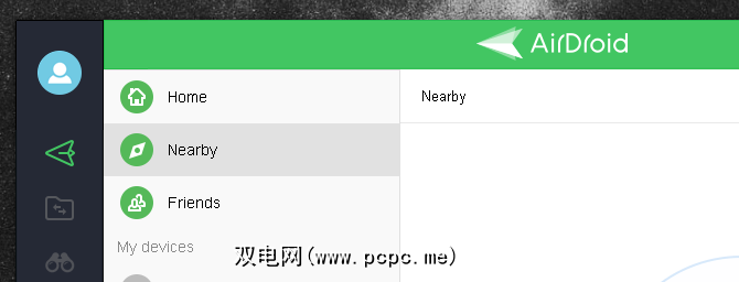 然后在屏幕上单击附近选项窗口左侧,然后在出现提示时单击搜索。这将搜索安装了移动AirDroid应用程序的附近设备。
