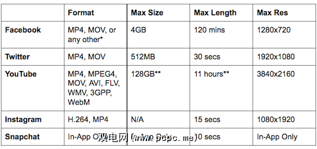 每项服务对您可以使用或不能使用视频进行的操作都有一些限制。这些可能是视频的最大长度,文件大小,文件格式等等。这就是您需要了解的内容。