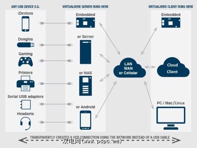基于以太网的USB(也称为基于网络的USB或基于IP的USB)是一种用于通过以太网,Wi-Fi甚至互联网共享基于USB的设备的系统。本质上,您可以从另一台计算机远程控制USB设备,例如打印机,闪存驱动器和网络摄像头。当然,您也可以从USB闪存驱动器访问数据。