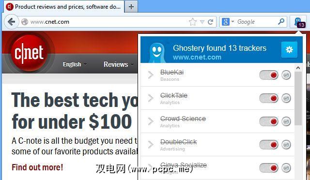 作为DoNotTrackMe的替代方案,Ghostery可以完成相同的工作,但没有电子邮件掩码。那为什么要提呢?好吧,关于两者中哪个更适合停止跟踪器和保护您的意见分歧。