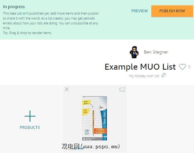 添加了一些项目后,跳回到列表页面。您可以单击任何框右上方的文本框图标,以添加有关该产品的评论。完成后,点击立即发布按钮以使其生效。完成此操作后,您就可以与任何人分享。