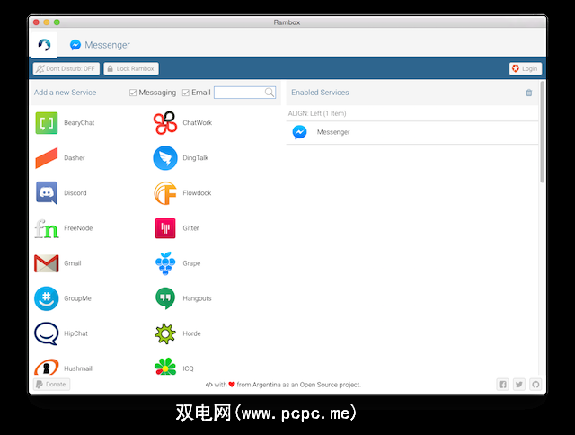 Rambox是另一个适用于Mac,Windows和Linux用户的桌面应用程序。它支持44种服务,尽管看上去确实与All-in-One和Franz有所不同,但它具有相同的选项卡式布局,并且能够根据情况启用桌面通知。它还为用户提供了添加自定义服务的选项,这使它成为众多网络上的任何人的自然选择。
