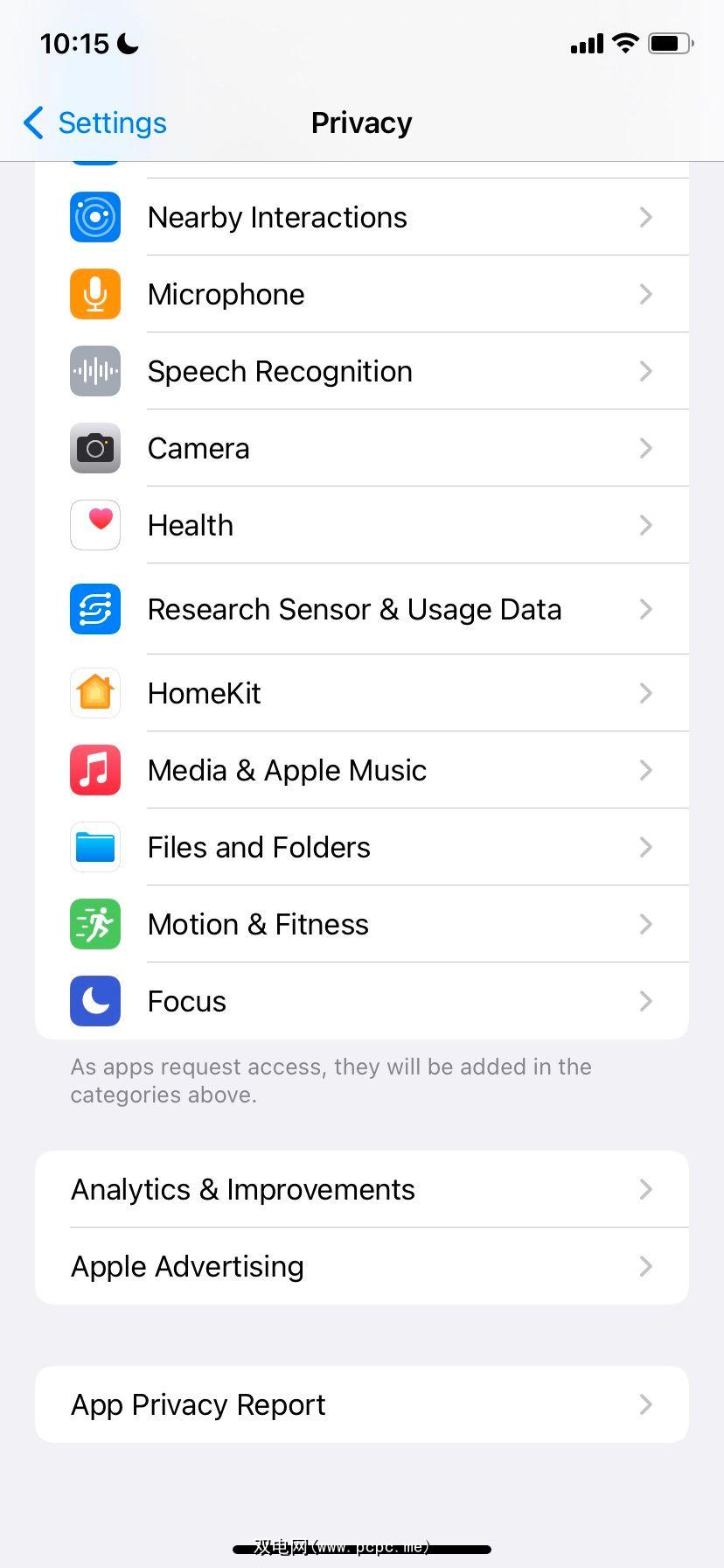 应用隐私报告,可以说是iOS 15 中最好的隐私功能之一,详细说明了哪些已安装的应用会访问您的数据和传感器以及何时访问。应用隐私报告跟踪的敏感数据和传感器包括位置、联系人、媒体库、相机、照片库、麦克风和屏幕录制。