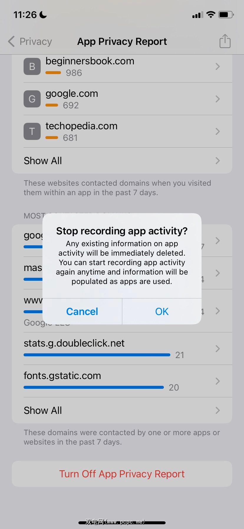 要在 iOS 15 上查看您的应用隐私报告,请按照以下步骤操作:
