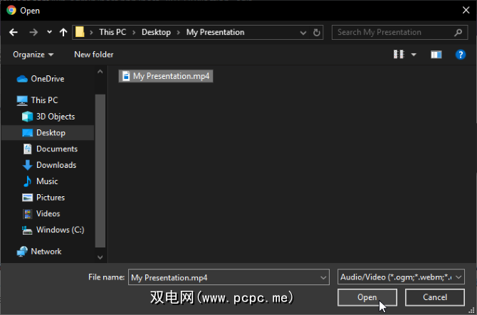 您将看到一个弹出窗口,要求您提供文件。在撰写本文时,Chromecast支持 .ogm,.webm,.ogv,.mp4,.m4v,.opus,.flac,.webm,.weba,.wav,.ogg,.m4a,.mp3,和 .oga 文件。这足以支持您要投射的媒体文件!