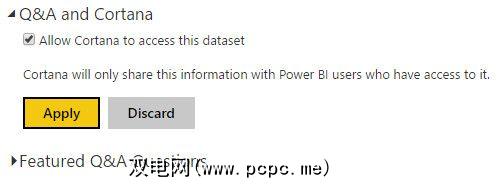 一旦进入“设置"菜单,转到数据集标签,然后选择要使用的数据。打开标题为“问题与答案和Cortana"的部分,并选中标记为允许Cortana访问该数据集的框,然后单击应用。