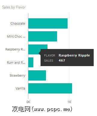 当Cortana显示以Power BI制成的图表时,您可以将鼠标悬停在各个元素上以查看更多信息。